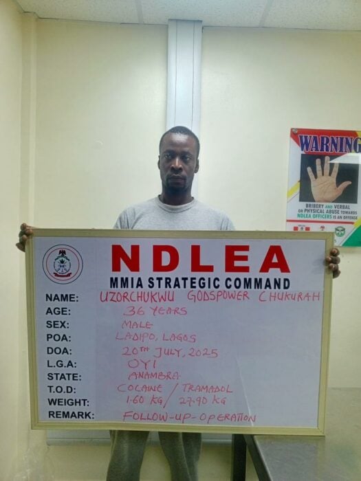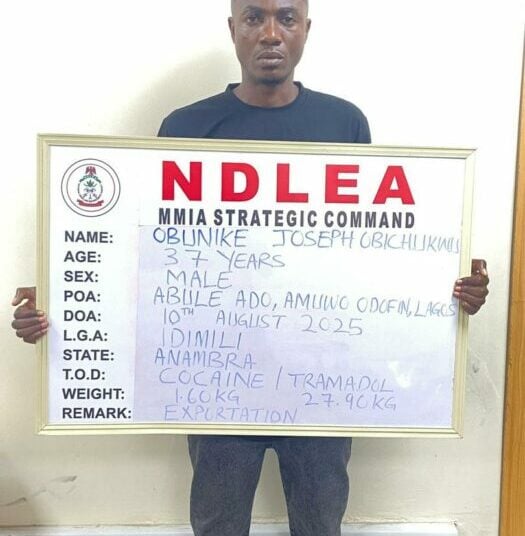Similarly, two kingpins of another syndicate: Obunike Joseph Obichukwu and Uzorchukwu Godspower Chukwurah were arrested by NDLEA operatives following the seizure of 2.60kg cocaine and 27.90kg tramadol concealed in motor spare parts being taken to Gabon through the Lagos airport on July 19, 2025. At the end of investigation, the duo were charged and arraigned before Justice Ambrose Lewis-Allagoa of the Federal High Court Lagos on six counts in charge number FHC/L/980C.