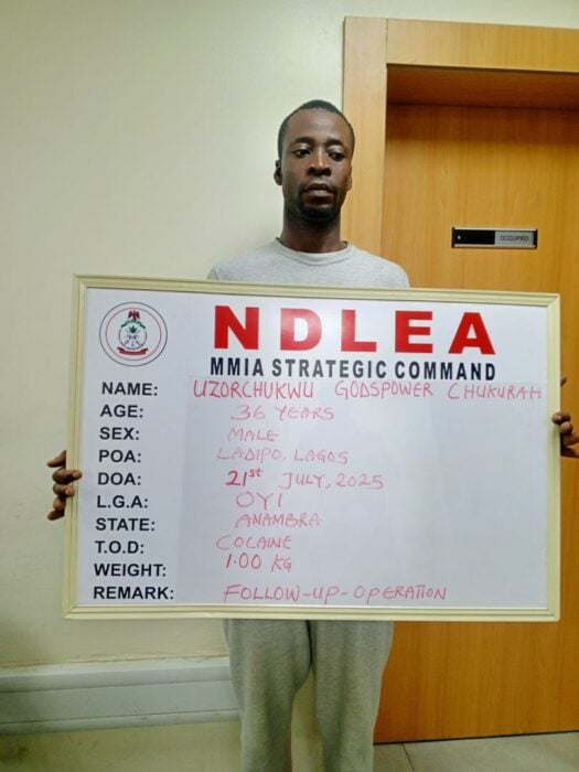 Similarly, two kingpins of another syndicate: Obunike Joseph Obichukwu and Uzorchukwu Godspower Chukwurah were arrested by NDLEA operatives following the seizure of 2.60kg cocaine and 27.90kg tramadol concealed in motor spare parts being taken to Gabon through the Lagos airport on July 19, 2025. At the end of investigation, the duo were charged and arraigned before Justice Ambrose Lewis-Allagoa of the Federal High Court Lagos on six counts in charge number FHC/L/980C.