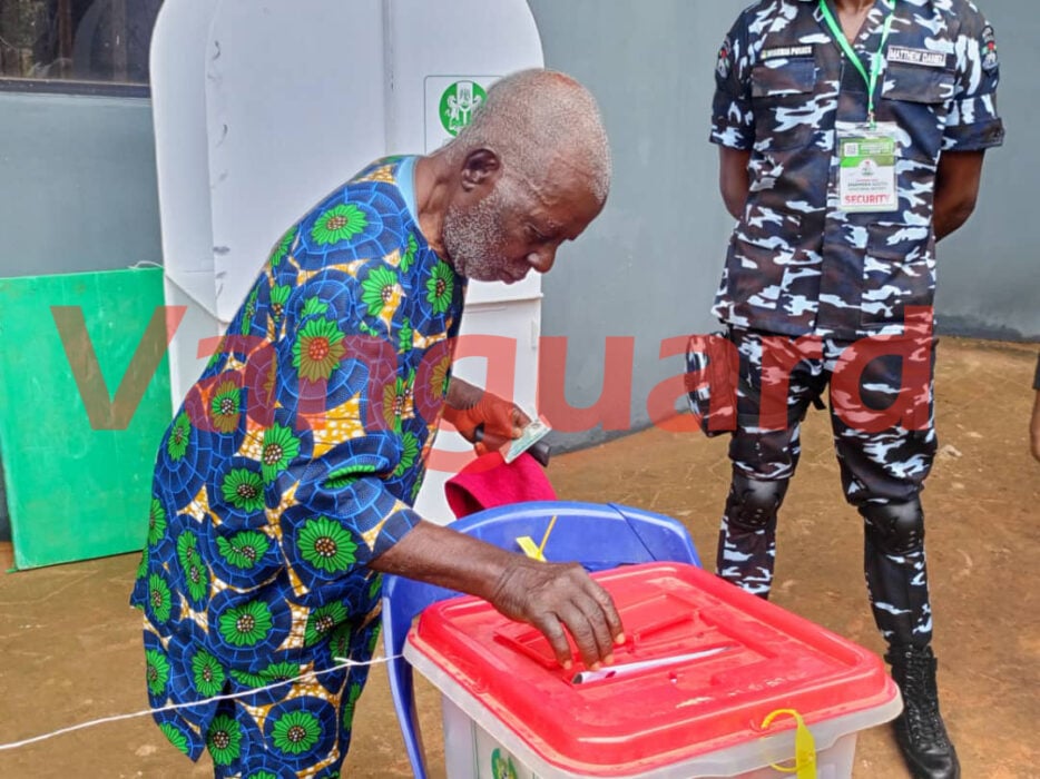 Papa Nwafo, who cast his vote at Ward 13, Unit 002, Isuofia, Aguata LGA, drew admiration from voters and officials alike for his commitment to civic duty despite his advanced age.
