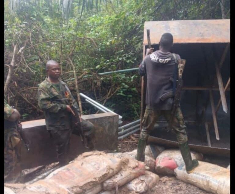 “Also, at Bipoko Community in Warri South LGA, troops discovered an active illegal refining site with a cooking oven and thirty-eight sacks filled with over 1,140 litres of stolen crude oil.