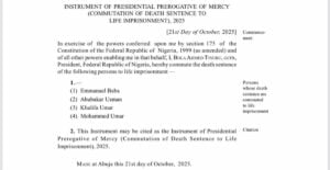 “Furthermore, to ensure that future exercises meet public expectations and best practices, the President has directed the immediate relocation of the Secretariat of the Presidential Advisory Committee on Prerogative of Mercy from the Federal Ministry of Special Duties to the Federal Ministry of Justice.