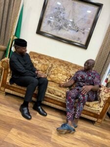 Immediate-past Vice President, Prof. Yemi Osinbajo, on Saturday, visited the former governor of Ekiti State, Ayodele Fayose, in the latter’s Lagos residence.